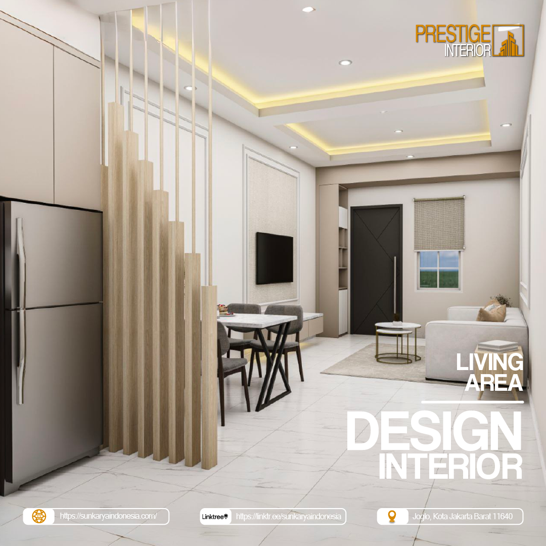 Living area ini didesain oleh PT. SUN KARYA INDONESIA dengan sentuhan modern dan elegan, memadukan furnitur berkualitas, tata ruang fungsional, dan aksen dekoratif untuk menciptakan suasana hangat dan berkelas.